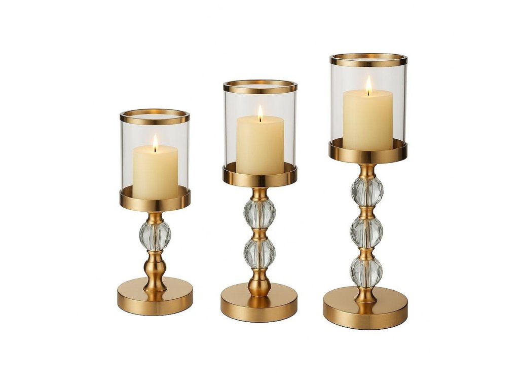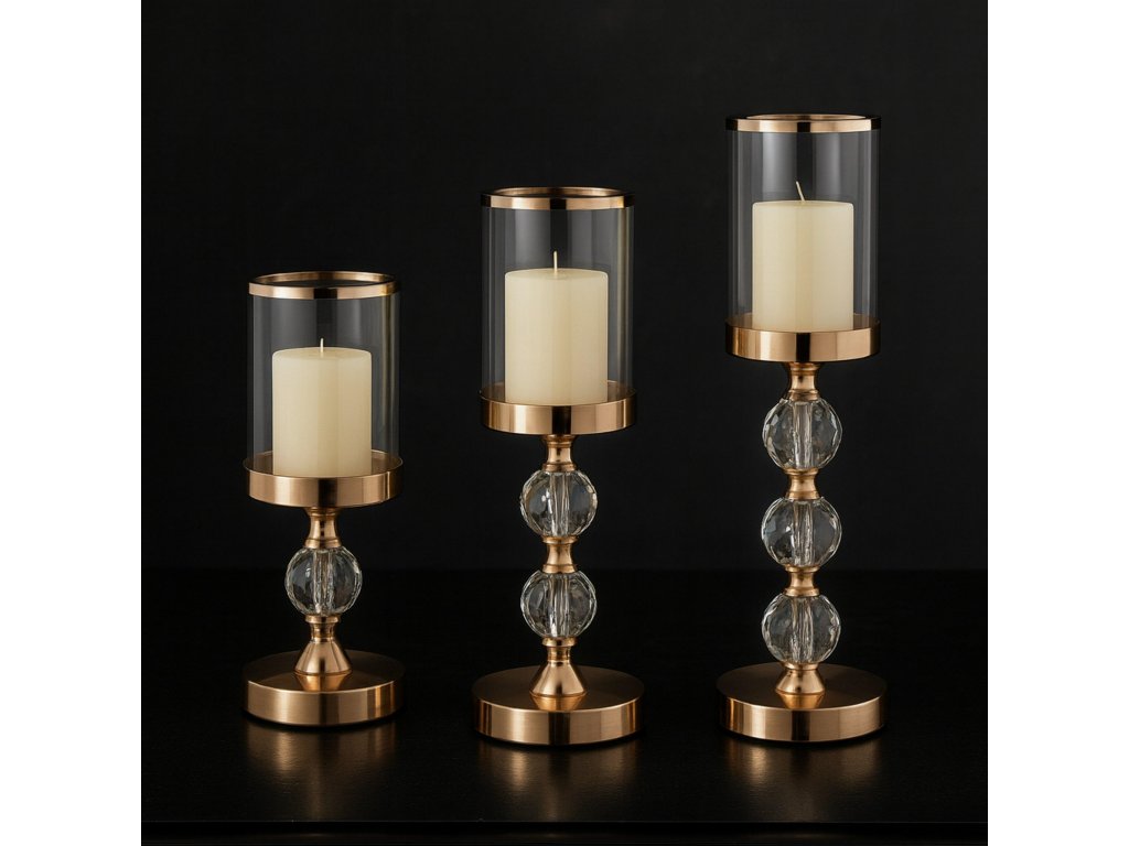 Dokonalý dekorativní prvek, který v místnosti vytváří příjemnou atmosféru. Každý svícen má zrcadlové vložky, které zesilují světlo hořících svíček, a dekorativní krystaly pro dekorativní účel. Pevná základna zabraňuje převrácení svícnu a pěnové dno zabraňuje poškrábání povrchu nábytku. Svícny se perfektně hodí jako dekorace do svatební síně nebo na hostinu.