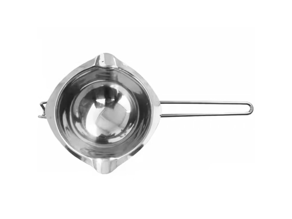 Prostorná nádoba na vosk a parafín. Vyrobeno z masivní nerezové oceli. Hluboká mísa je vybavena dvěma perforacemi po stranách, které usnadňují nalévání roztaveného materiálu. Dlouhá rukojeť a profilovaný háček v přední části mísy umožňují připevnit tavicí zařízení k hrnci bez rizika jeho sklouznutí.