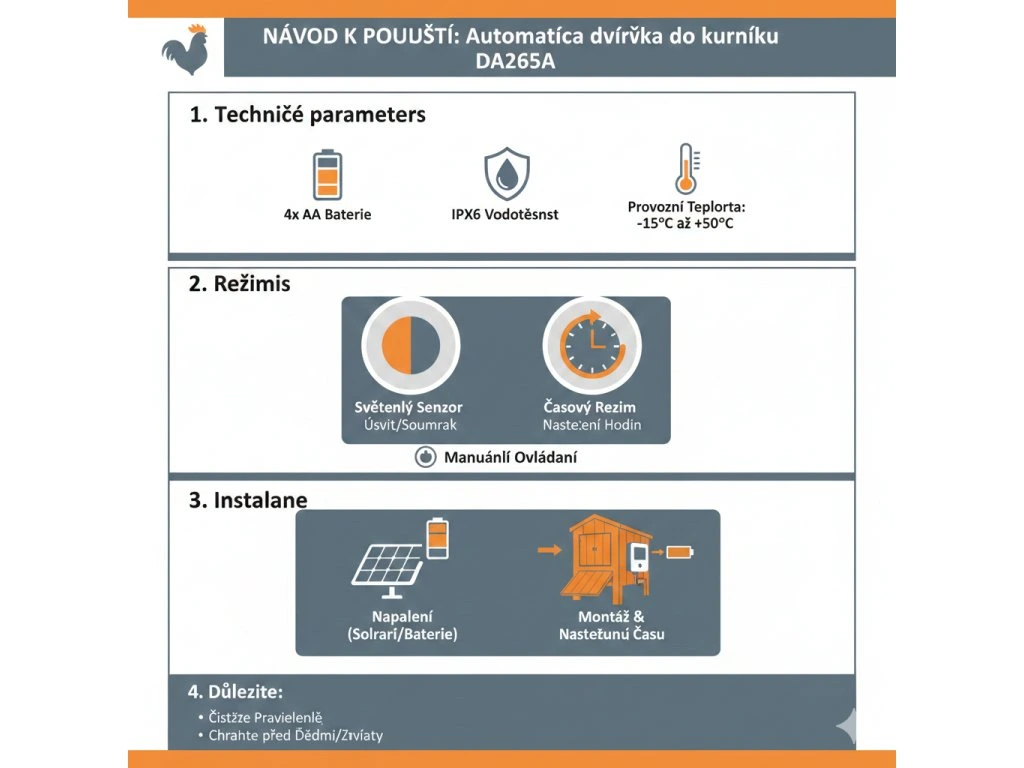 AUTOMATICKÉ DVEŘE DA265A PRO KUŘECÍ DOMÁCNOST SE SOLÁRNÍM PANELEM