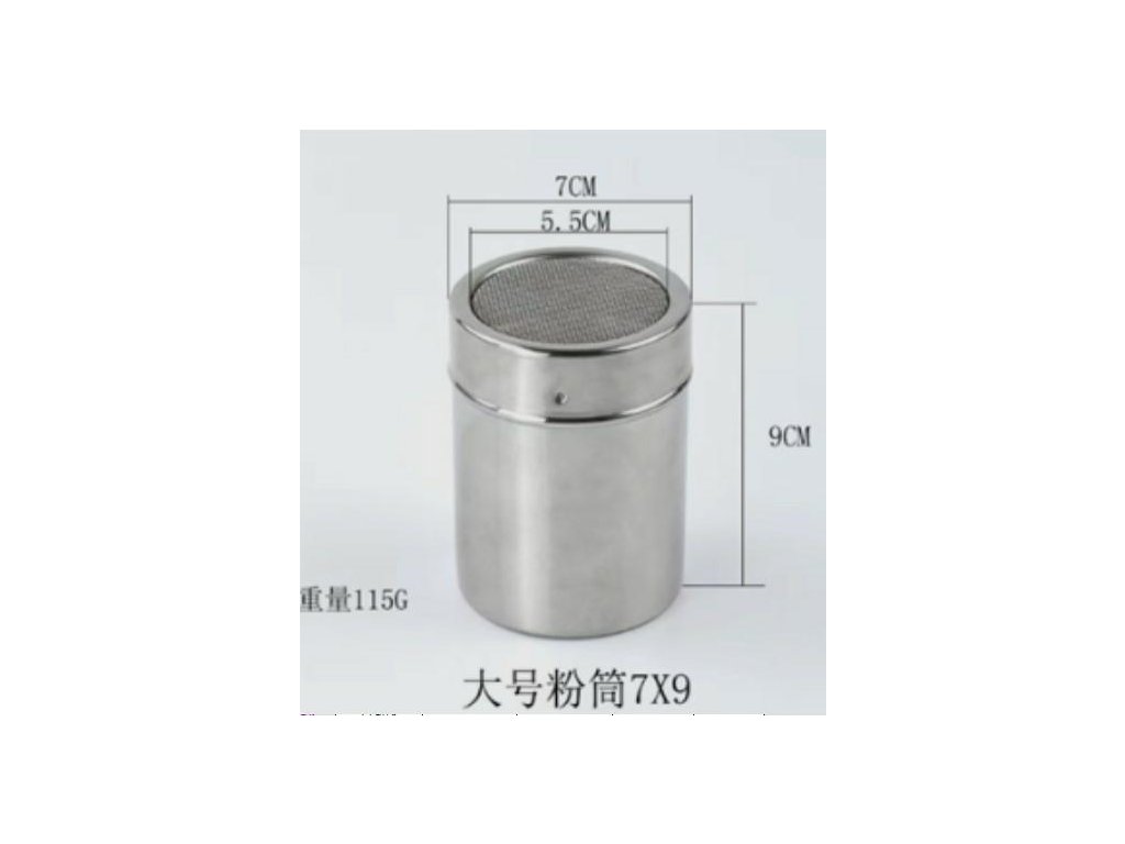 Ocelová kuchyňská nádoba s víkem a sítkem. Perfektní do každé kuchyně. Hustě osazené otvory jsou perfektní pro dávkování moučkového cukru, kakaa nebo skořice. Těsně uzavřené víko zabraňuje vyvětrání obsahu nádoby. Ocelová konstrukce zajišťuje vysokou odolnost a neovlivňuje chuť uložených potravin.