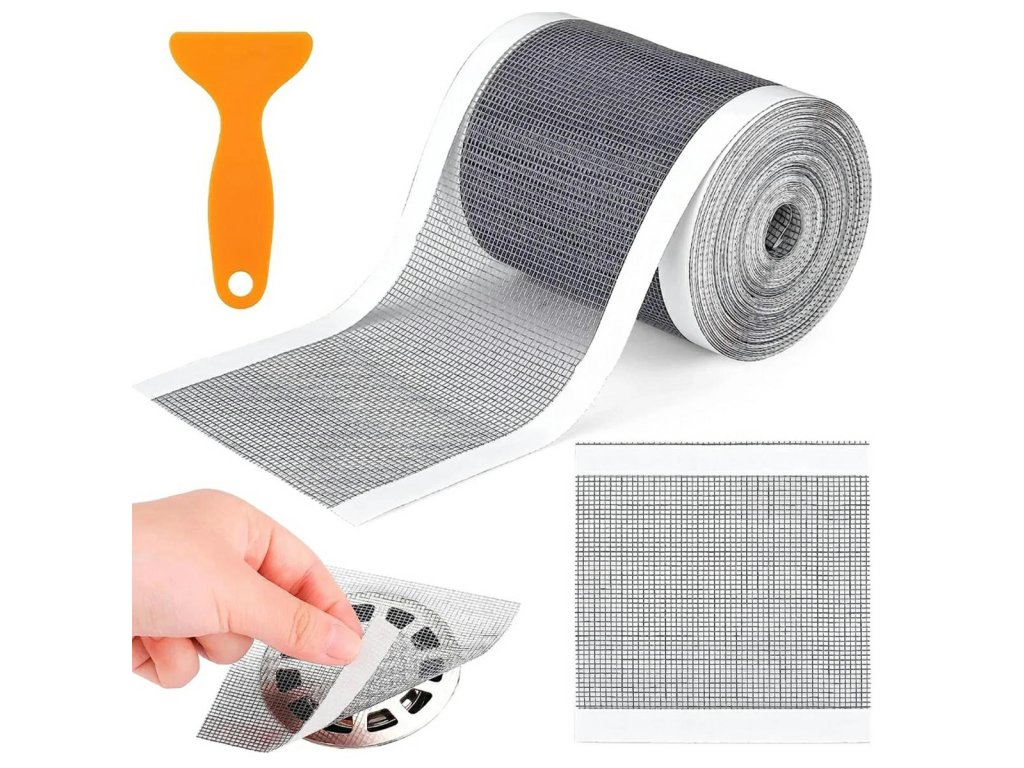 Samolepicí páska pro lineární sprchové odtoky. Účinně chrání odtok před ucpáváním vlasy a jinými nečistotami. Velmi snadná instalace a lze ji zkrátit na požadovanou velikost (pásku jednoduše nalepíte přímo na horní část odtoku). Sada obsahuje špachtli pro lepení a odstraňování použité pásky.