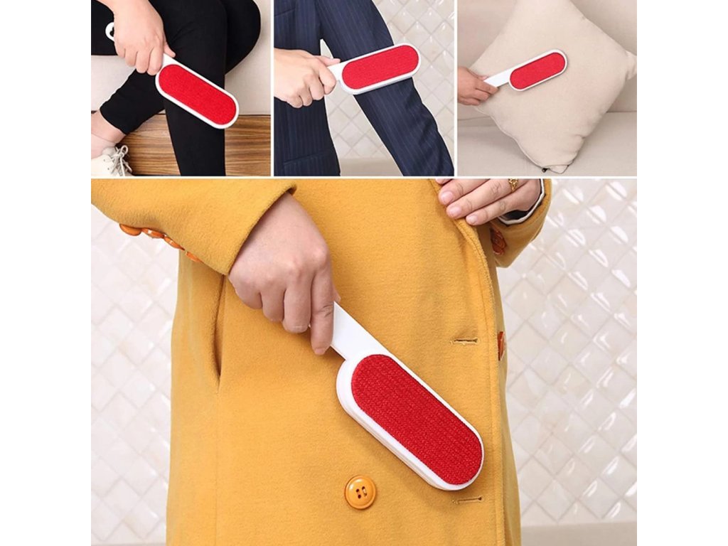 - Kompaktní, oboustranný kartáč pro odstraňování vlasů a chlupů z oděvů.