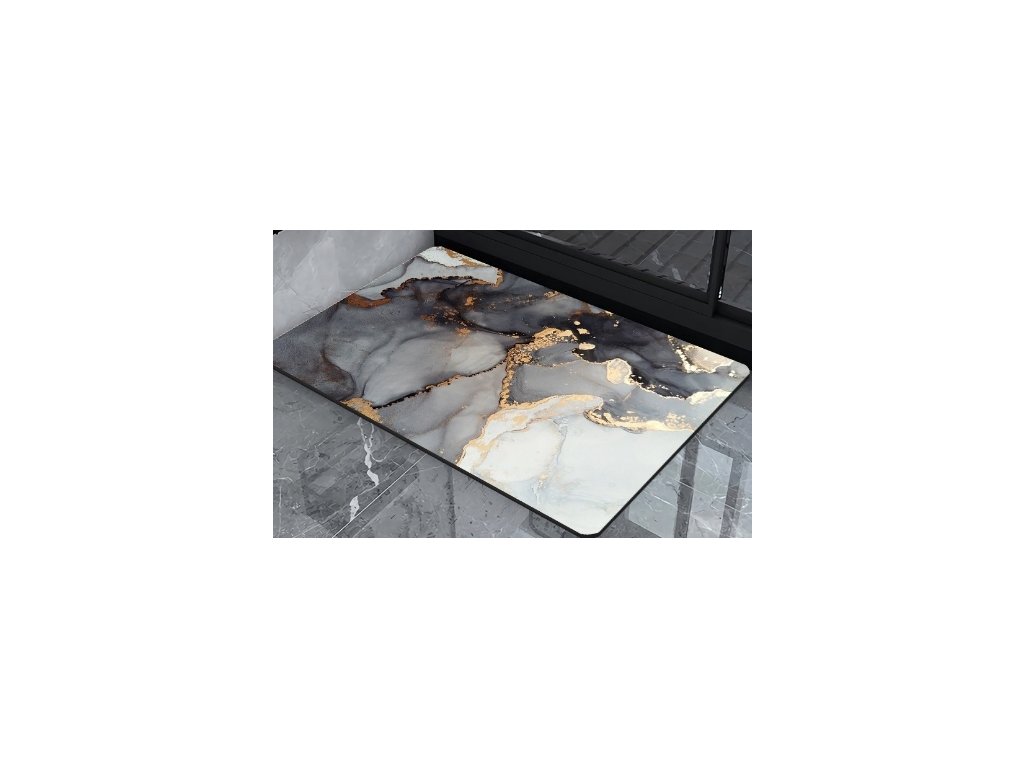 Elegantní koupelnový koberec s módním mramorovým vzorem a jemnými zlatými akcenty. Spojuje stylový design s praktičností – ideální do koupelny, vedle vany, sprchy nebo umyvadla. Vyrobeno z měkkého a savého materiálu, poskytuje pohodlí pro nohy a rychlou absorpci vlhkosti.