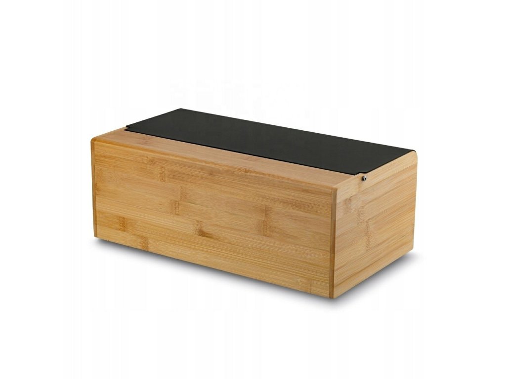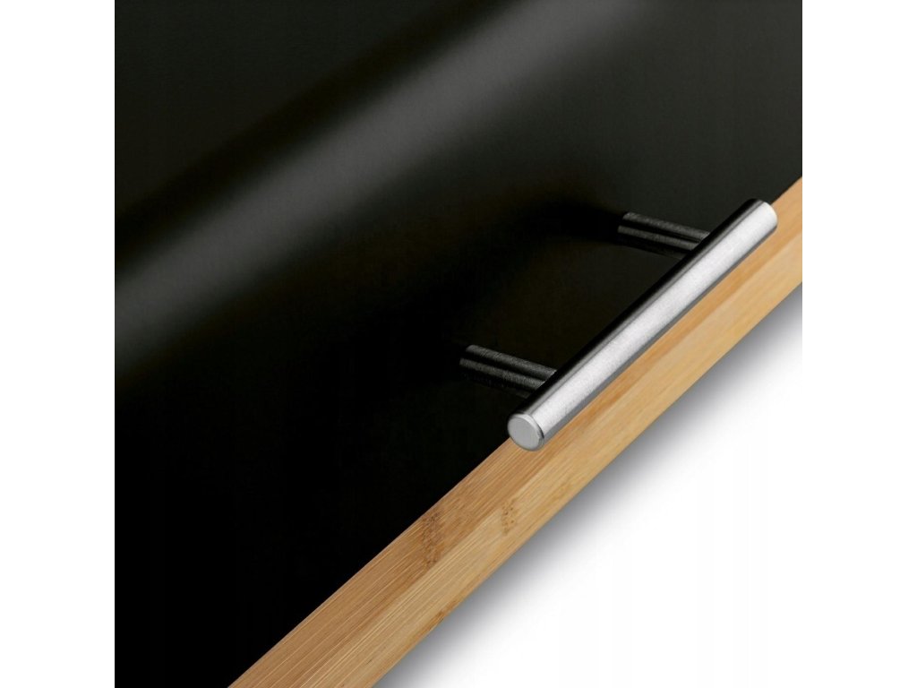 Moderní kuchyňský chlebník vyrobený z kombinace práškově lakovaného kovu a přírodního bambusového dřeva. Elegantní tvar a praktický design umožňují hygienické skladování chleba. Vybaven protiskluzovými nožičkami pro stabilitu a bezpečné používání.