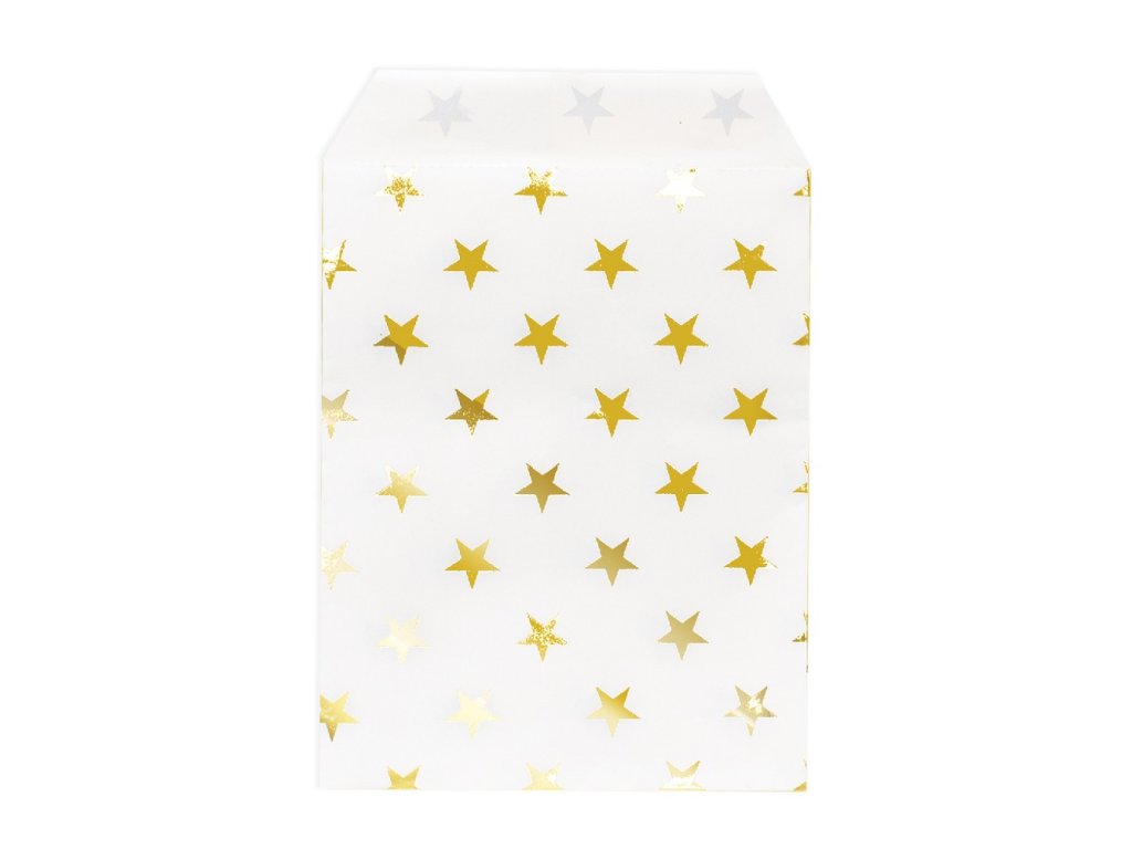 Dárkový papírový sáček 10x15 cm, bílý, zlaté hvězdičky