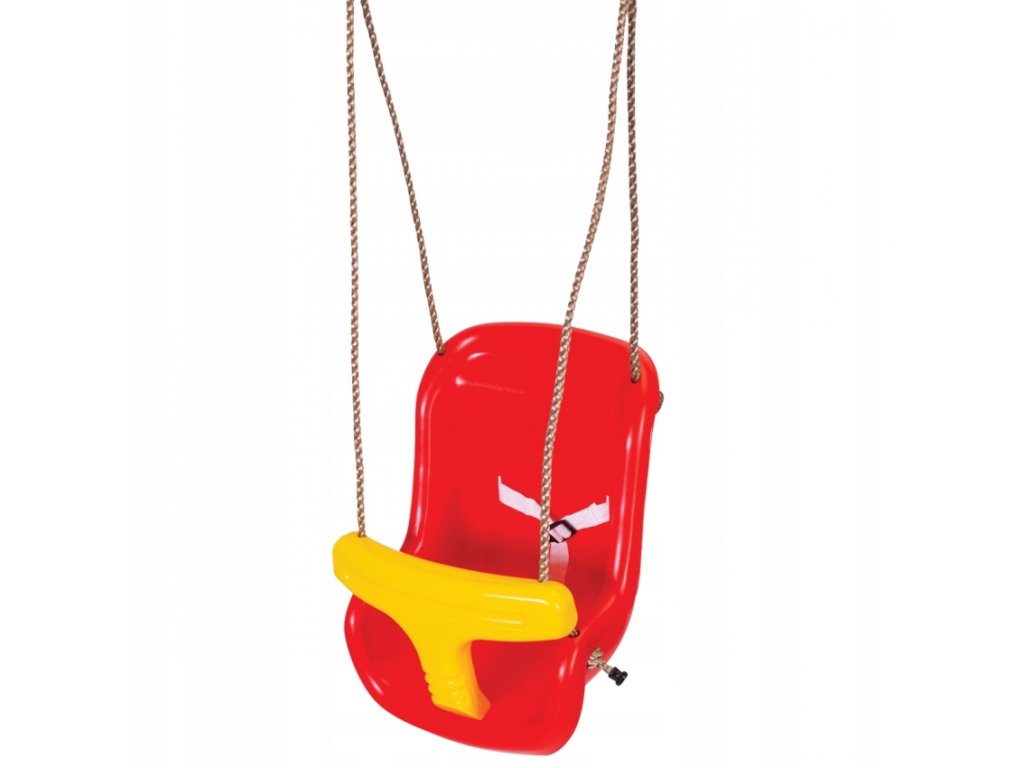 Dětská plastová houpačka s pohodlným sedadlem a opěradlem. Zaoblené, hladké povrchy pro pohodlné sezení, s ochranou proti vypadnutí zepředu. Rychlá a snadná montáž. Ocelová oka na koncích silných lan zaručují bezpečnost při hře. Maximální zatížení až 30 kg. Určeno pro děti od 9 do 36 měsíců.