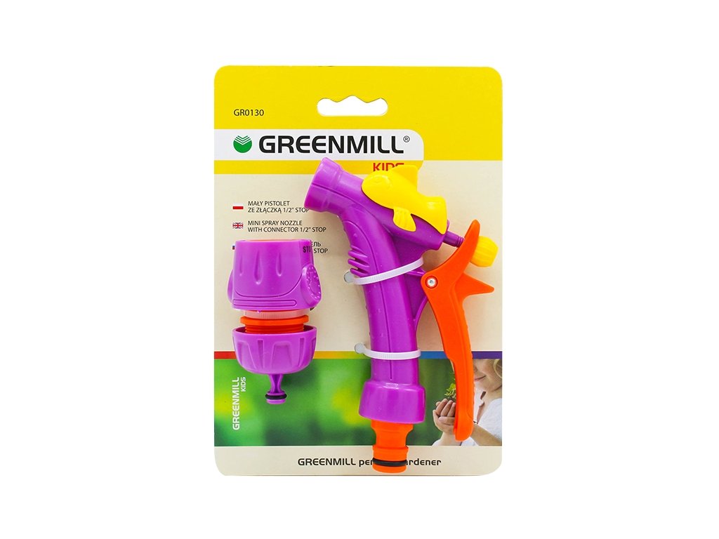 Malá pistole ze série Greenmill Kids se STOP konektorem vhodná pro děti od 14 let. Obsahuje adaptér pro připojení rychlospojky.