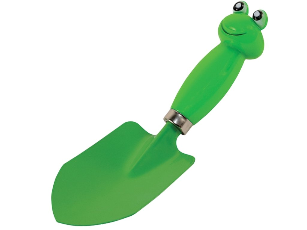 Kvalitní dětský kovový rýč s plastovým držadlem ve tvaru žáby. Potěšte své děti kvalitním náčiním na zahradu nebo pískoviště.