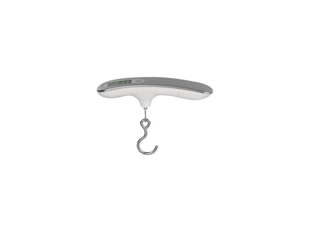 automatické vypnutí: po 1 minutě|barva: stříbrná|Bluetooth: ne|BMI index – měření tuku, vody a svalové hmoty: ne|funkce dovažování: ano|indikace slabých baterií: ano|indikátor přetížení: ano|jednotky váhy: kg, lb|LCD displej: ano|max. zátěž: 50 kg|napájení: 1× 3 V CR2032 (součástí balení)|paměť: ne|podsvícený displej: ne|povrch váhy: ABS plast + hliník (Al)|přesnost vážení: 10 g|prodejní obal: 1 ks, krabička|produkt: závěsná váha|rozměr: 31 × 40 × 148 mm