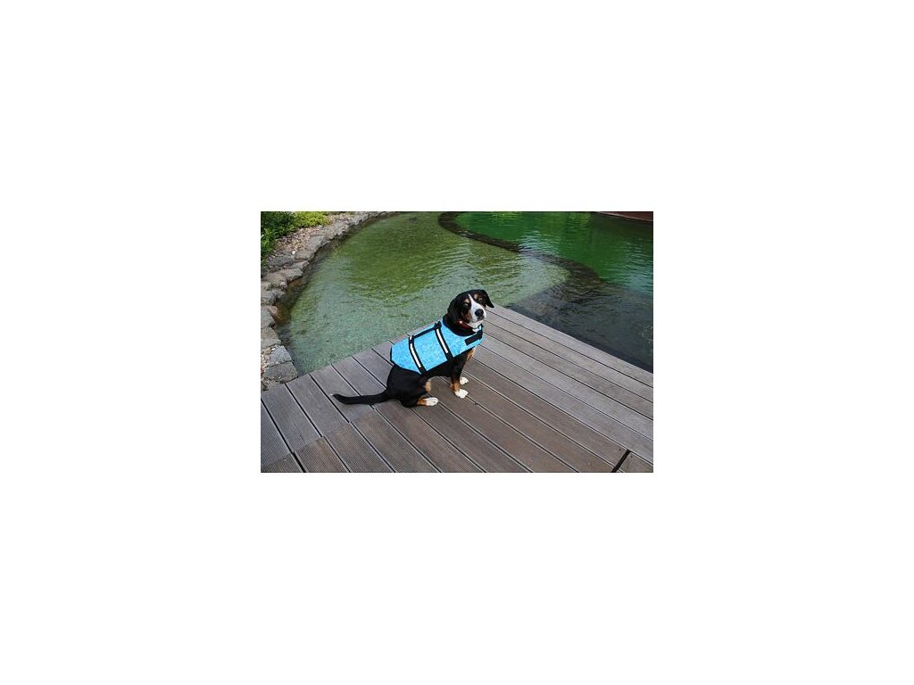 Užívat si léto a nemít obavy o svého čtyřnohého mazlíčka je sen každého starostlivého páníčka. Dog Swimmer plovací vesta pro psy vám ušetří starost o vašeho pejska, když víte, že není zrovna zdatný plavec. Vesta je vyrobená z 90% PVC a 10% Nylonu. Má jednoduché zapínání díky nastavitelným třem přezkám a suchému zipu kolem hrudi psa. Horní část vesty je opatřena světlo-odrážejícími prvky pro lepší viditelnost ve tmě, madlem k přenosu a plastovým očkem k připnutí vodítka. S vestou Dog Swimmer bude váš mazlíček lehce nadnášen nad vodou a může si tak lépe zvyknout na vodní prostředí. Vestu nabízíme v několika barevných provedení a velikostech. Velikostní tabulka: Velikost: XS délka zad 20 cm obvod krku 25-35 cm obvod hrudníku 30-42 cm vhodné pro domácí mazlíčky o hmotnosti 2,5-4 kg Velikost: S délka zad 25 cm obvod krku 36-47 cm obvod hrudníku 41-53 cm vhodné pro zvířata o hmotnosti 4-7 kg Velikost: M délka zad 30 cm obvod krku 40-48 cm obvod hrudníku 41-63 cm vhodné pro domácí mazlíčky 7-10 kg Velikost: L délka zad 35 cm obvod krku 42-54 cm obvod hrudníku 50-75 cm vhodné pro domácí zvířata 10-20 kg Velikost: XL délka zad 45 cm obvod krku 50-71 cm obvod hrudníku 70-95 cm vhodné pro domácí zvířata 20-35 kg Velikost: XXL délka zad 50 cm obvod krku 62-90 cm obvod hrudníku 88-124 cm vhodné pro domácí zvířata 35-45 kg