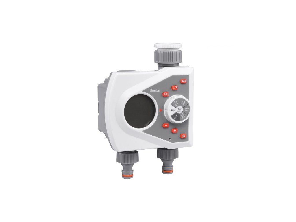 Elektronický zavlažovací počítač na automatický nebo manuální provoz s LCD displejem a indikátorem stavu baterie. Nabízí režim ECO, programovací funkce dvou nezávislých ventilů, funkce nastavení času spuštění postřiku nebo nastavení frekvence postřiku.