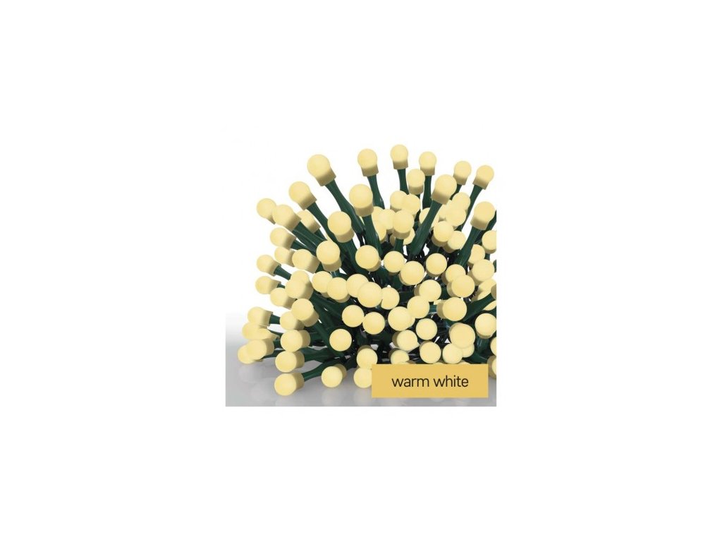 Řetězy CHERRY – standard přinášejí široké možnosti využití při tvorbě nejen vánoční výzdoby, ale také při vytváření kouzelné atmosféry po celý rok. LED světýlka jsou umístěna v malých bílých kuličkách, které působí jako elegantní dekorace, i když nejsou osvětlena. Díky variabilní délce a výběru barvy světla můžete tyto řetězy využít k ozdobení menších interiérových dekorací, vánočního stromku nebo i větších stromů v exteriéru.