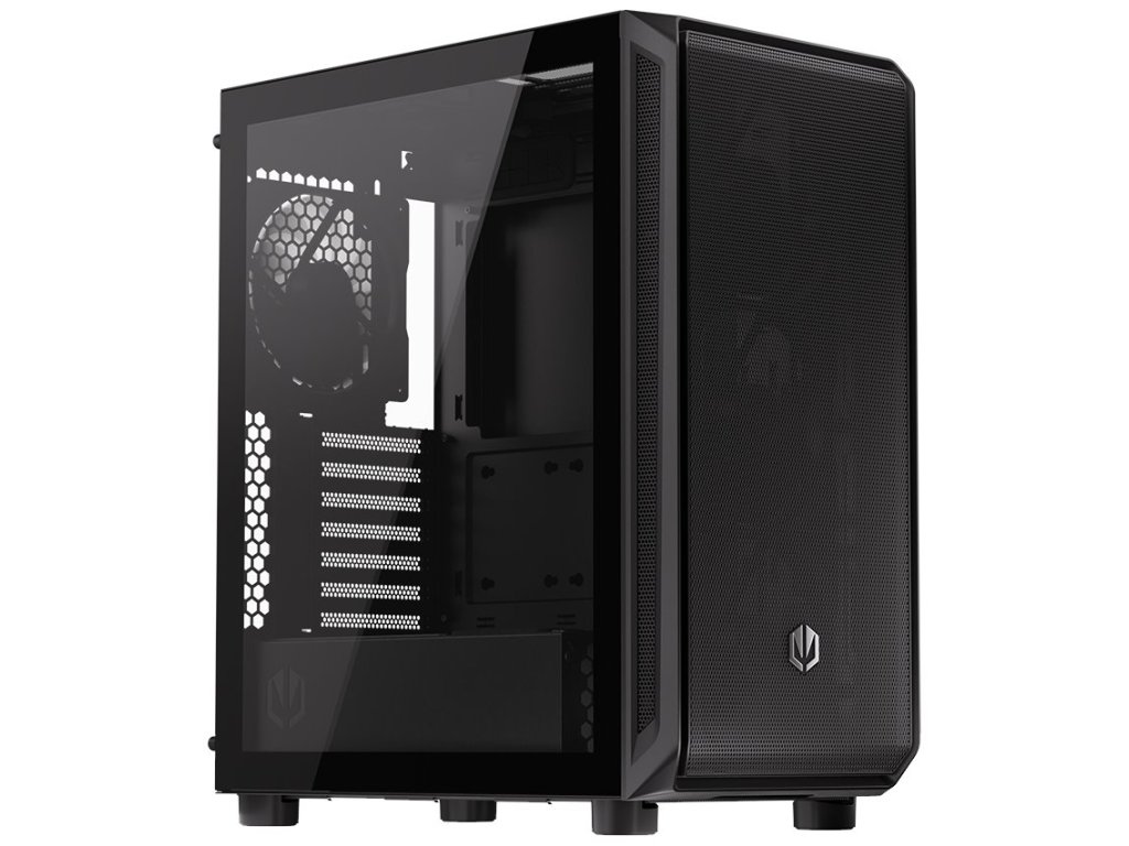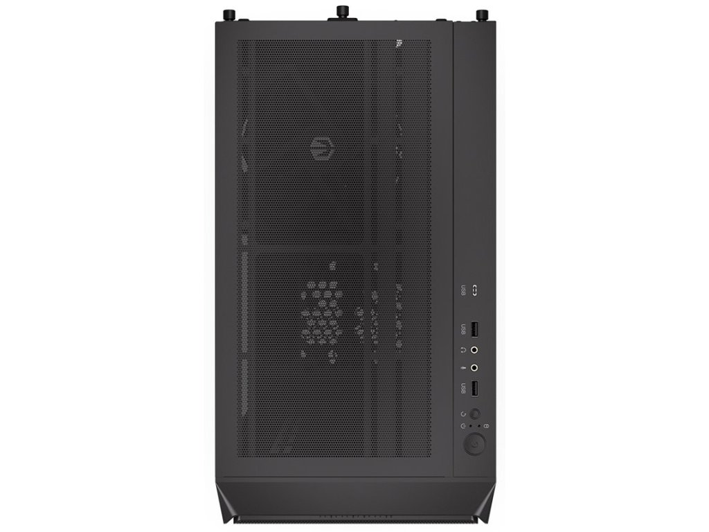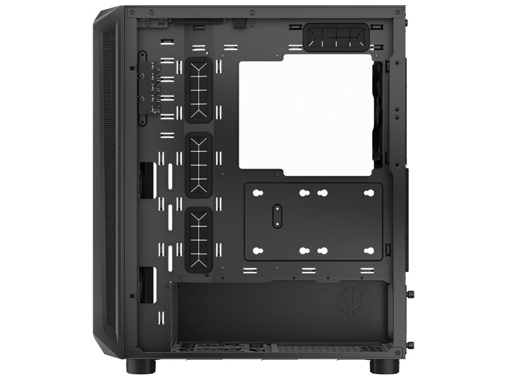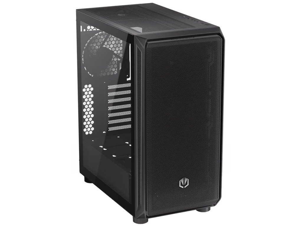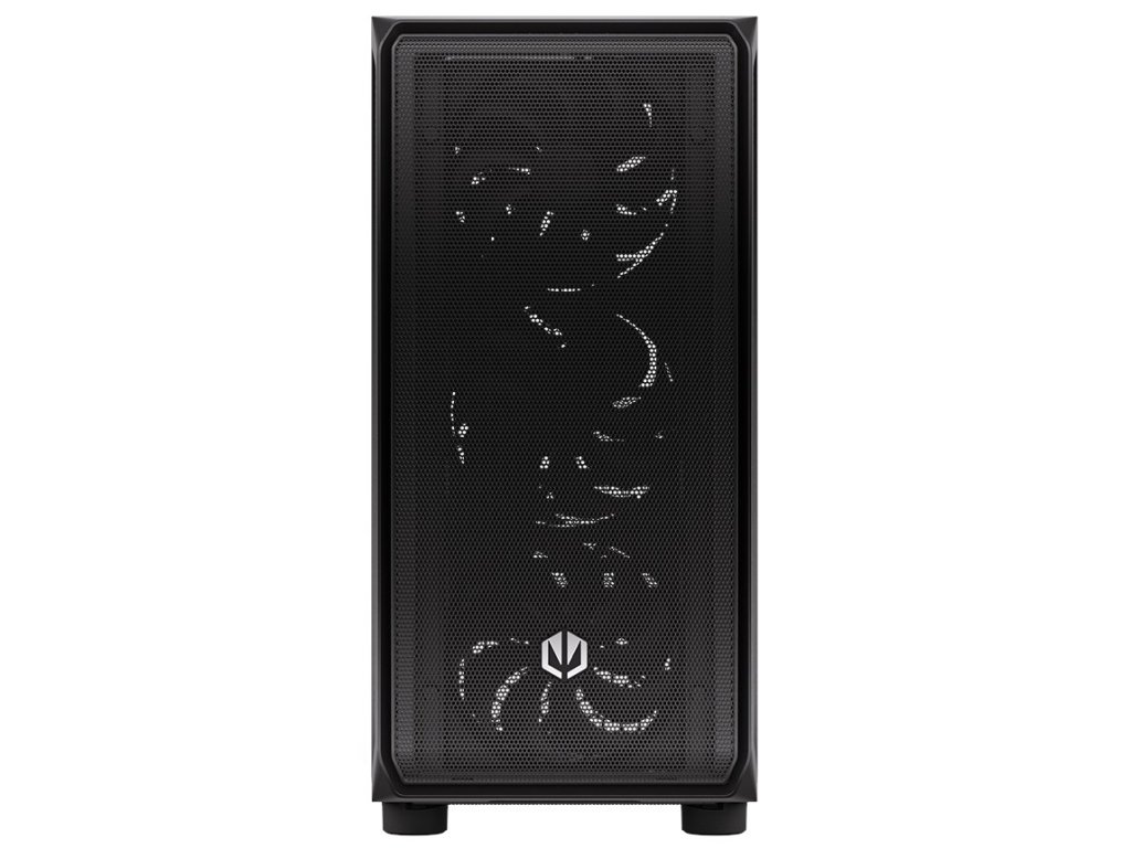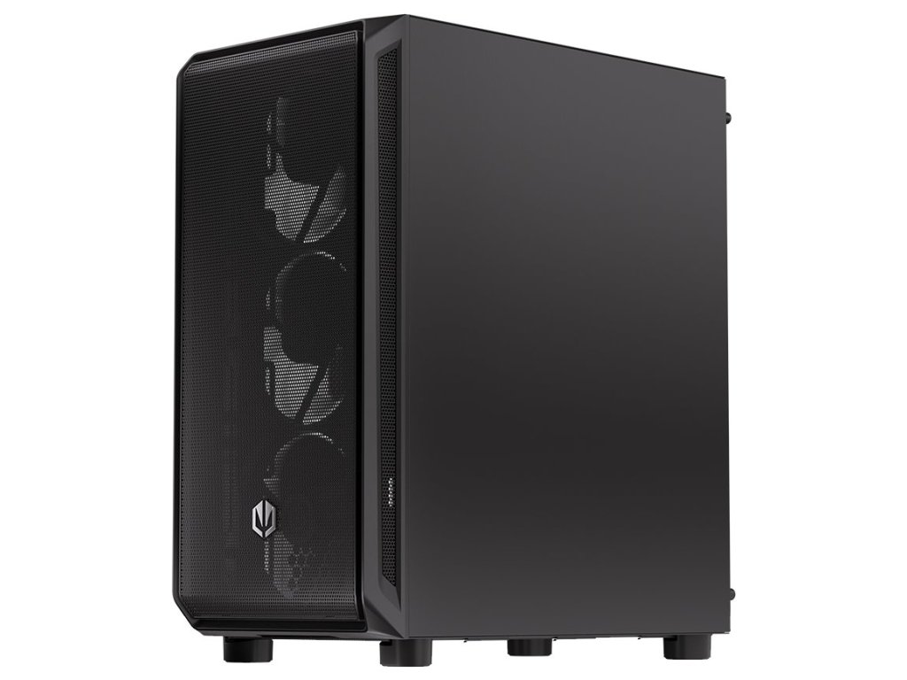 Skříň formátu Middle Tower s průhlednou bočnicí nabízí šest 2,5" pozic pro SSD disky a jednu 3,5" pozici pro pevný disk. Na horním panelu naleznete dva porty USB 3.0, jeden port USB-C a dále také konektor pro sluchátka a konektor pro mikrofon. Skříň je osazena pěti ventilátory o velikosti 140 mm. Důmyslné řešení umožňuje pohodlné umístění až 360 mm dlouhého výměníku vodního chlazení na přední straně. Ve skříni je dostatek prostoru pro chladič CPU do výšky až 179 mm a grafickou kartu o délce 350 mm. Skříň je dodávána bez zdroje. Součástí je také sada prachových filtrů.