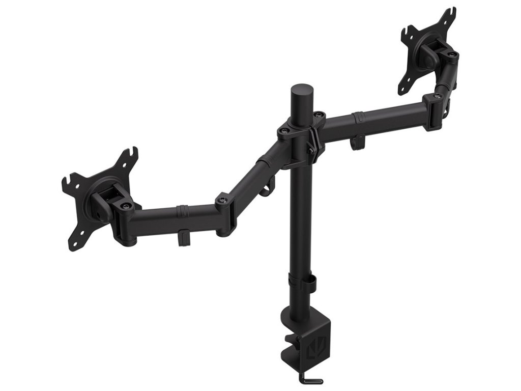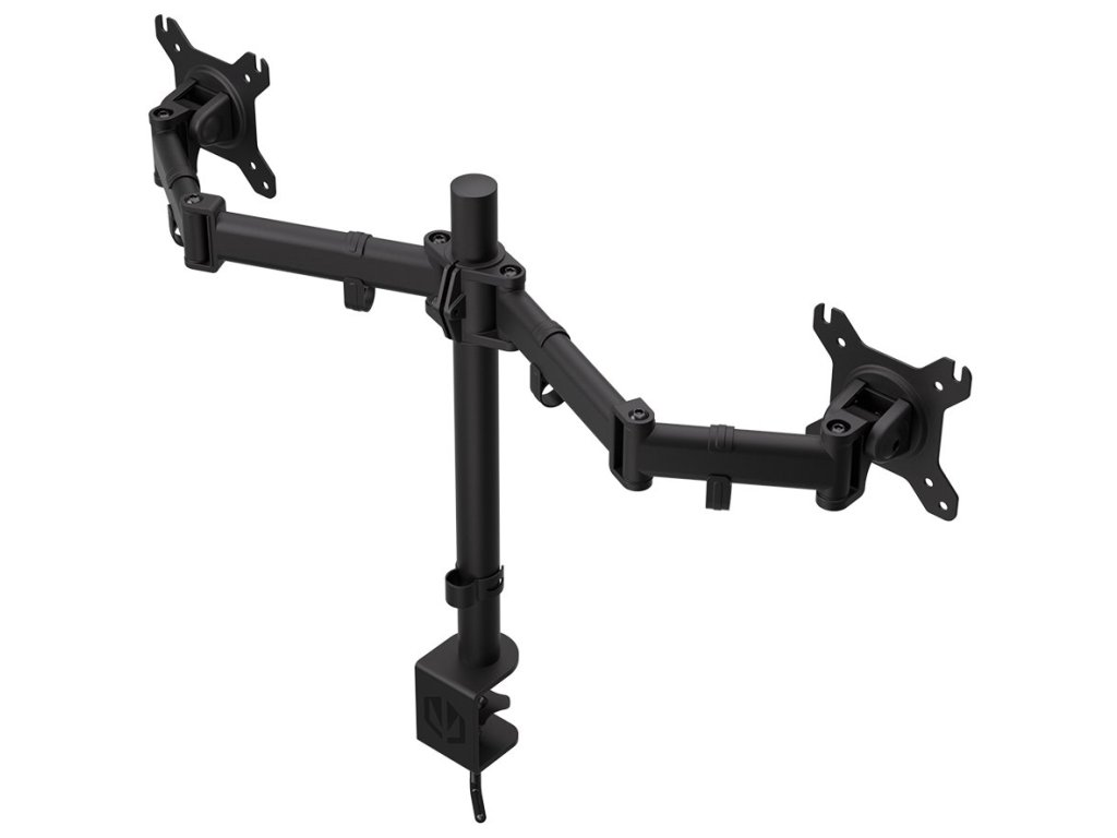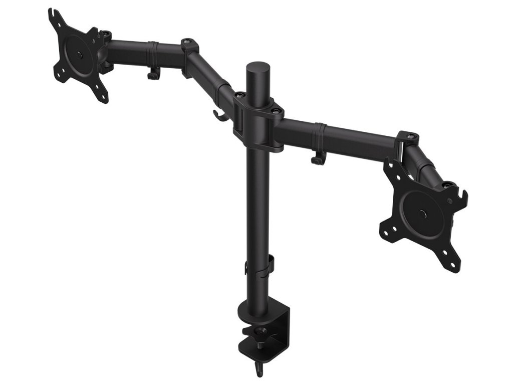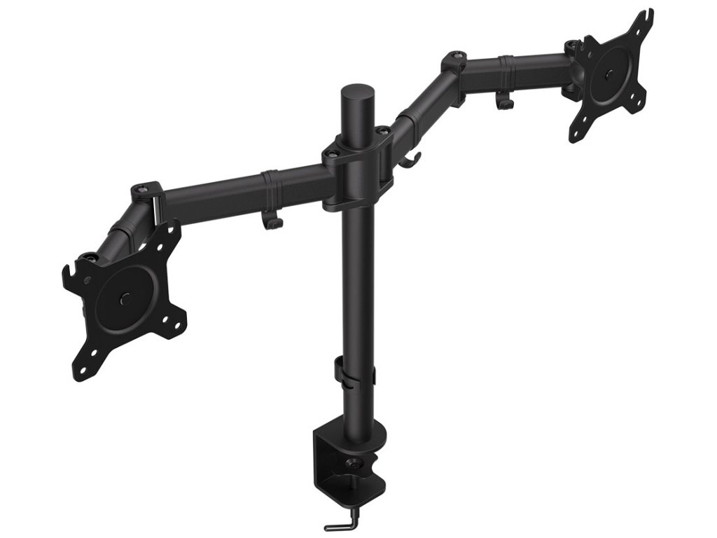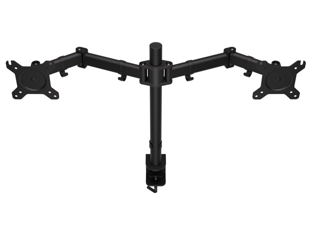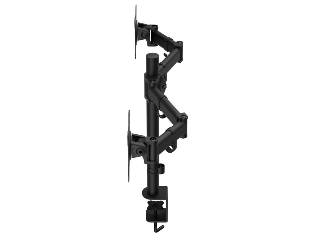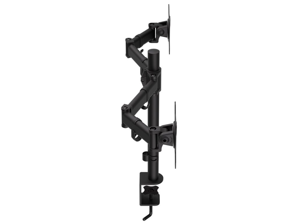 Stolní VESA držák pojme dvě ploché obrazovky o velikosti až 27" a celkové hmotnosti do 16 kg. Univerzální technologie naklápění, otáčení a rotace umožňuje optimální nastavení a současně chrání i krční páteř, díky snadnému nastavení monitoru do úrovně očí. Je kompatibilní se standardy VESA 75 × 75, 100 × 100 mm a vhodný pro stoly o tloušťce do 60 mm.