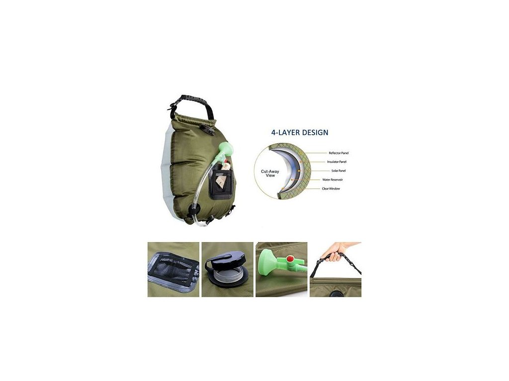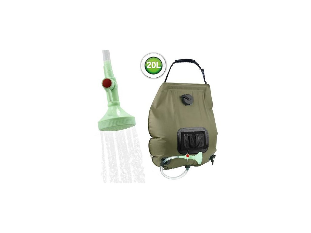Kempingová solární sprcha s objemem 20 l. Se zesíleným madlem a integrovaným orientačním teploměrem.