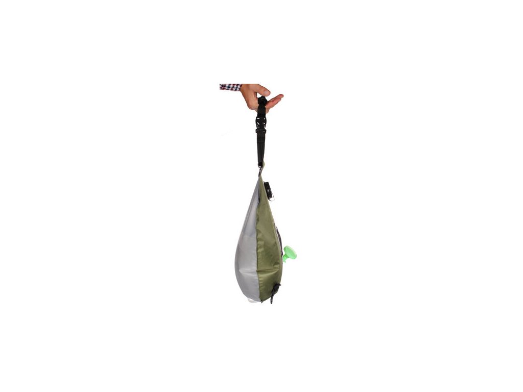 Vak na vodu Merco Ewer vám poslouží jako praktická přenosná sprcha při kempování, na čundru a tam, kde nemáte zrovna přístup ke klasické sprše. Tento hydrovak je vyrobený z odolného PVC materiálu a nabízí objem 20 l. Celkové rozměry vaku jsou 50 x 46 x 3 cm, hmotnost je přibližně 430 g. Díky použitému materiálu je lehce skládací, jednoduše ho dáte do batohu a přenesete kdykoliv a kamkoliv. Součástí vaku je výpustný ventil se sprchovou hadičkou a zesílené madlo pro přenášení a zavěšení. Navíc má tento model integrovaný orientační teploměr. Instrukce: před prvním použitím vypláchněte jednou lžící jedlé sody a teplou vodou. Naplňte vodou, položte na rovný povrch černou stranou nahoru a vystavte jej přímému slunečnímu světlu. Před sprchováním otestujte teplotu vody a v případě potřeby doplňte studenou vodu.
