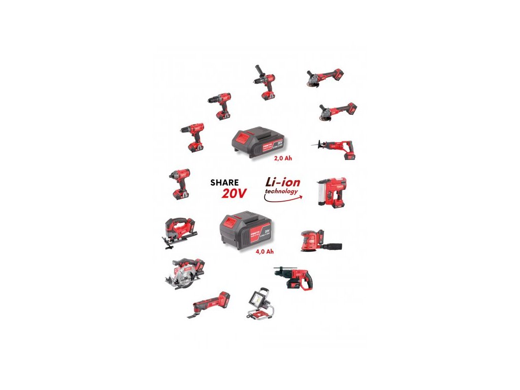 FESTA SHARE 20 V - AKU přímočará pila je součástí skupiny výrobků s možností využívat Li-ion batarie 2.0 Ah a 4.0 Ah ve všech strojích takto označených.