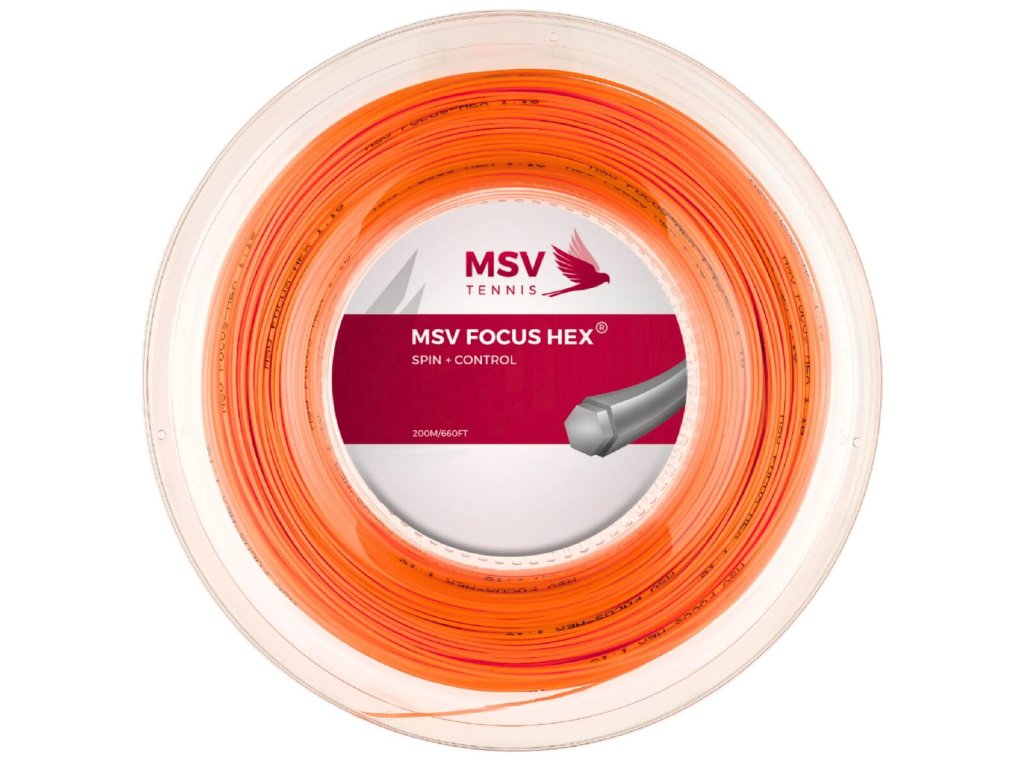 Již řadu let nejoblíbenejší a nejprodávanější výplet z řady MSV a to zejména pro svůj šestihranný profil a stálost napětí, významnou roli hraje i cena,která je oproti jiným značkám výpletů ve stejné kvalitě poloviční až třetinová. Ve všech vlastnostech nejlepší na německém Saitenforum.de (Životnost, Síla, Kontrola, Cit, Komfort, Spin, Stabilita napětí). Celková spokojenost testujících hráčů 91% (39/43 testerů). CoPoly výplet nové generace, HEXagonální profil struny (šestiúhelník). Velmi dobrá trvanlivost strun. Výplet nabízí stálé napětí a dlouhodobý výkon. MSV Focus HEX ztrácí po 30-ti dnech a mnoha hodinách usilovné hry pouze 13% ze svého napětí. Velkou výhodou je potenciál pro spinové údery. Hráči ho popisují jako "nejlepší výplet na spinové údery", a to ve všech jeho průměrech. Hra s tímto výpletem je navíc velmi pohodlná.