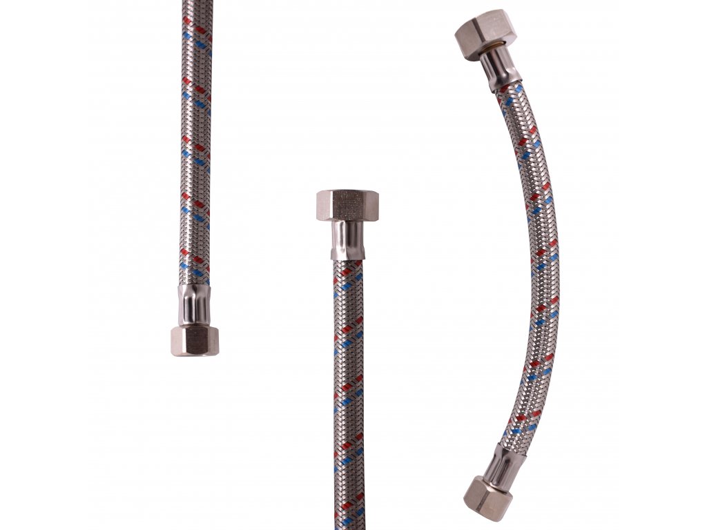 Flexi hadice nerezová pro zápustný držák se zamonavíjecí hadicí. 1 ks nerez ⌀ 12mm, M15x1 x 1/2'', délka 20 cm