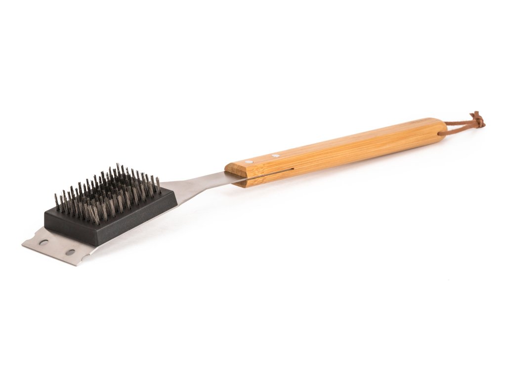 Po každém grilování přichází na řadu úklid – a s tím vám pomůže čistící kartáč G21. Hrubé štětiny si poradí s odolnou mastnotou a díky praktické škrabce odstraníte i silnější nánosy nečistot. Ergonomicky tvarovaná bambusová rukojeť dobře padne do ruky a zároveň dodává nářadí přírodní vzhled. Díky délce 45,3 cm se navíc dostanete i do hůře přístupných míst.