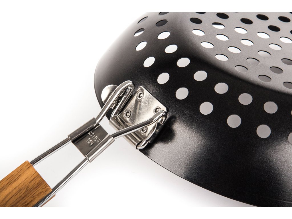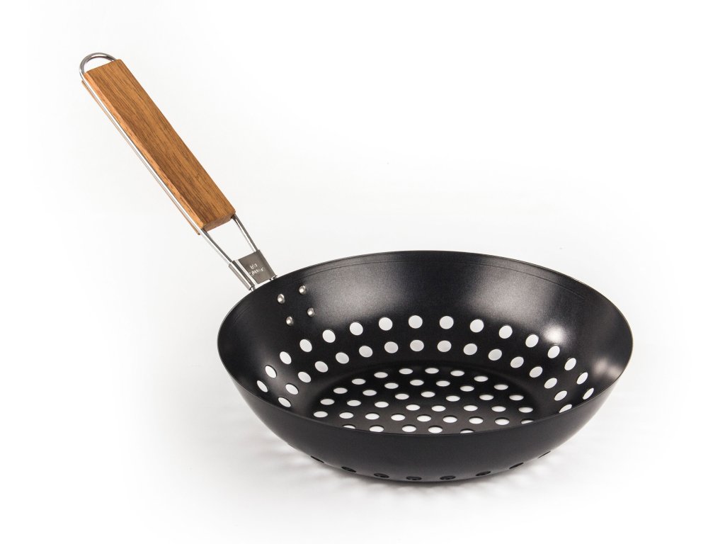 - Pánev je ideální i pro grilování menších kousků masa, ryb nebo zeleniny, které by běžným roštem propadly dolů