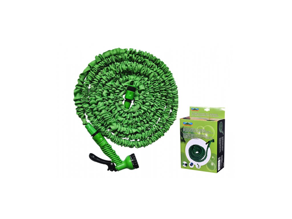 Set se skládá z natahovací hadice a příslušenství. Hadice ja dlouhá 10 metrů, po natažení 30 metrů. Materiál vnitřní hadice: dvojitý latex 6 x 9,5 mm, vnější látka 600 x 600 polyester vysoké pevnosti. Příslušenství: 1 pár konektoru, 1 ks 1/2-3/4“ adaptéru, 1 ks 7-funkční stříkací pistole.