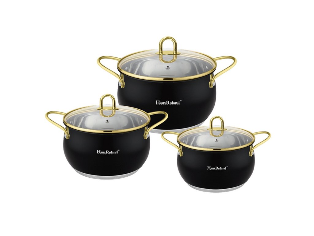 HAUS ROLAND sada nerezového nádobí 6 dílná, barva matná černá s pozlacenými úchyty