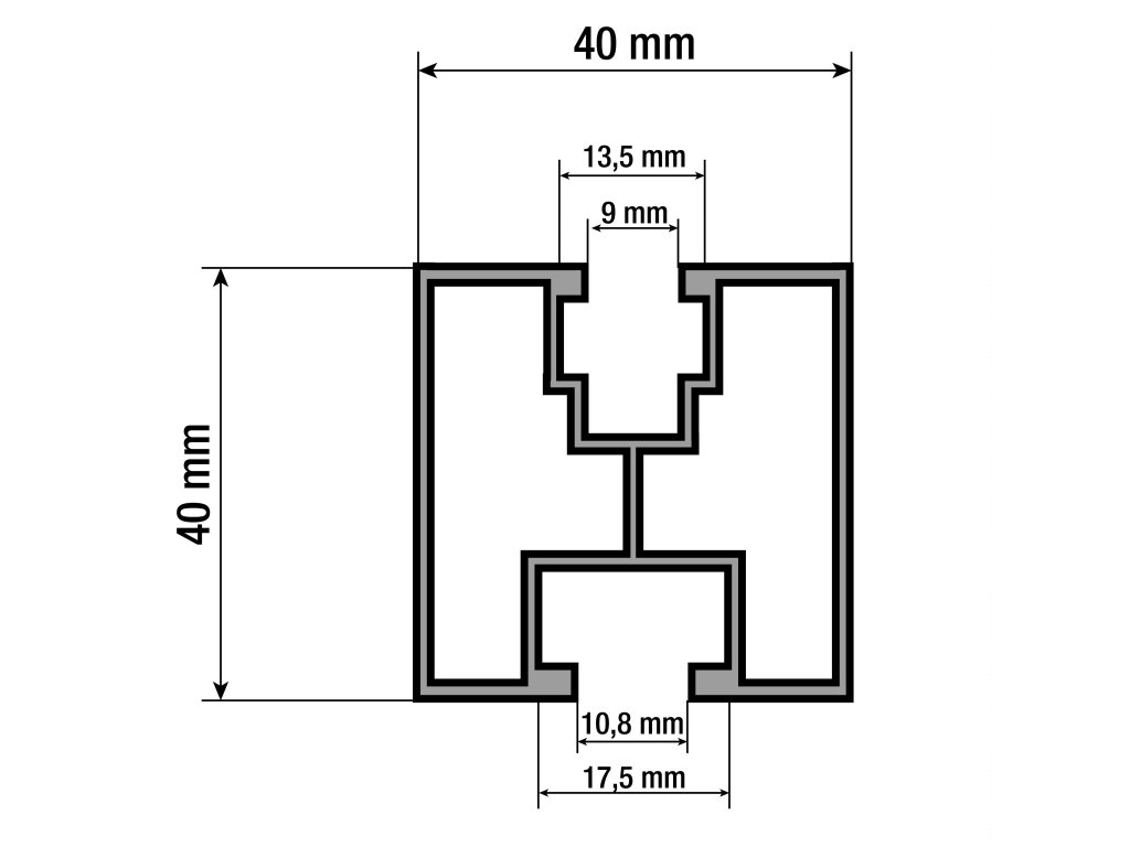 Hliníkový profil G21 40x40 mm pro šroub se šestihr. hlavou a čtyřhr. matku, 6 m