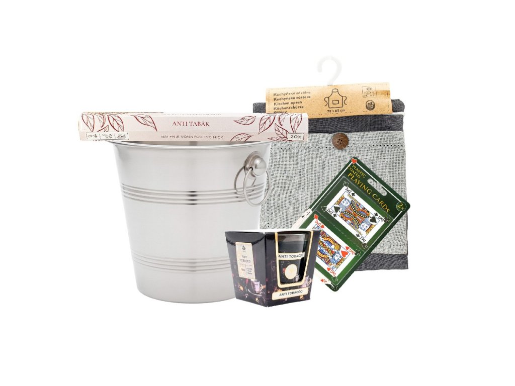 HOME ELEMENTS Dárkový set Stylový večer- chladič navíno, zástěra, karty, svíčka a vonné ty