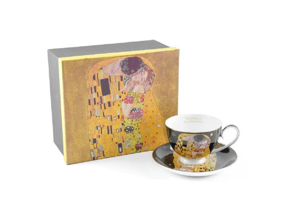 HOME ELEMENTS Hrnek 250 ml, s podtáckem, Klimt, Polibek tmavý