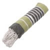 Lehký a skladný fouta ručník s třásněmi z příjemného materiálu. V přírodních barvách, zelené, bílé a šedé proužky.