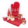 Utěrka v sadě 3 kusů je součástí naší kolekce s motivem bílých vloček a sobů na červeném pozadí. Pro sladěnou kuchyň můžete mít z našeho eshopu další kuchyňský textil se stejným motivem a ve stejných barvách.