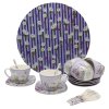 Elegantní, vysoce kvalitní tenký porcelánový set na čaj nebo kávu s jemným květinovým dekorem s levandulí. Sada se skládá ze šesti porcelánových šálků, podšálků a lžiček a je zabalena v dárkové krabičce.