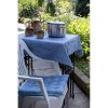 Světle modrý ubrus z recyklované bavlny zdobí prošité lemování v barvě tmavě modré, ubrus je jednoduchý, elegantní, materiál je měkký, v přírodním stylu. Spolu s dalším podobným textilem z recyklované bavlny doladí dokonale váš interiér.