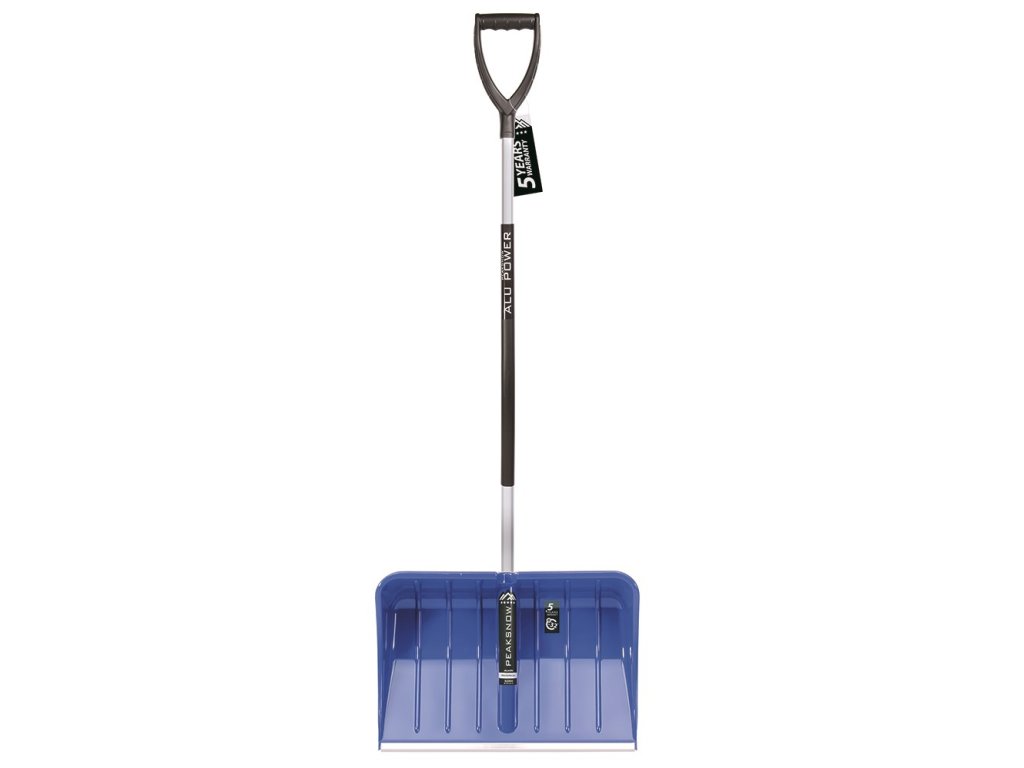 Hrablo z kvalitního plastu a kovu, hliníková hrana pro snazší nabírání sněhu, odolnost vůči teplotám do -32 °C. Pogumovaná část násady pro pohodlný a bezpečný úchop. Modrá barva.