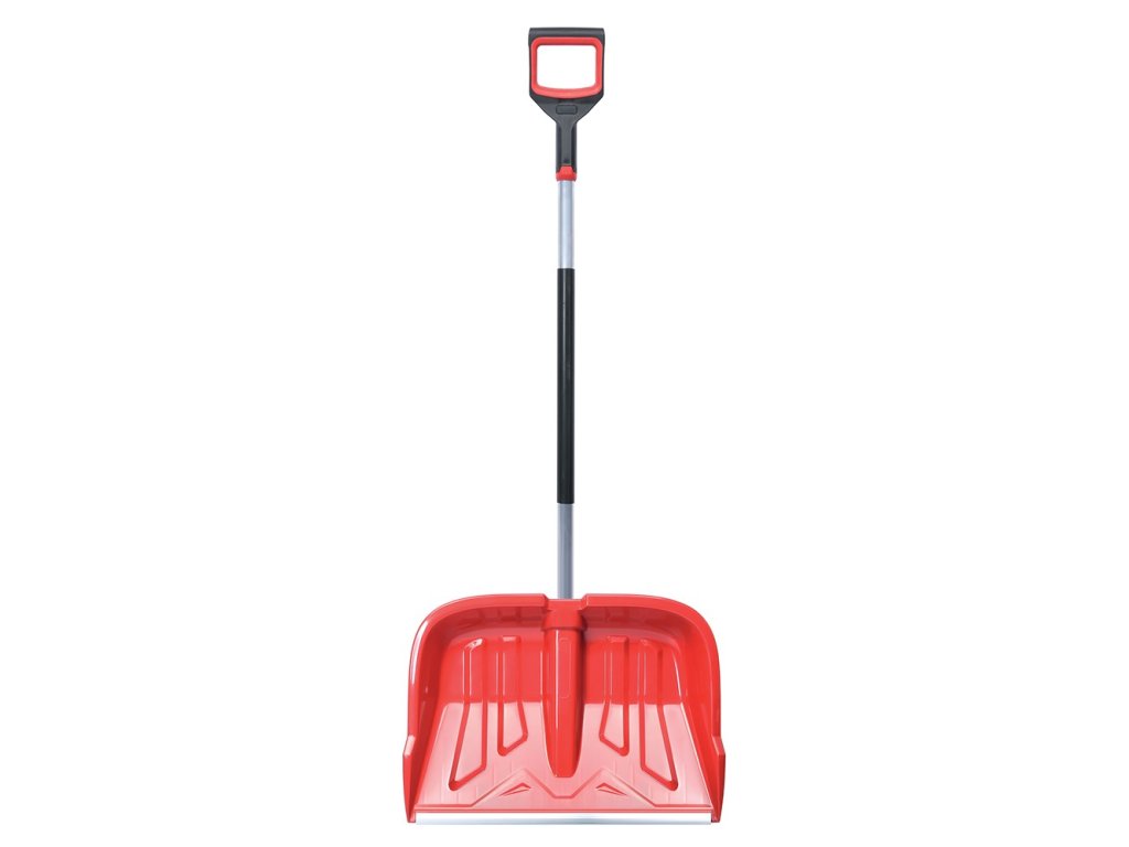 Hrablo z kvalitního plastu a kovu, hliníková hrana pro snazší nabírání sněhu, odolnost vůči teplotám do -32 °C. Násada s pogumovanou částí pro pohodlný a bezpečný úchop. Červená barva.