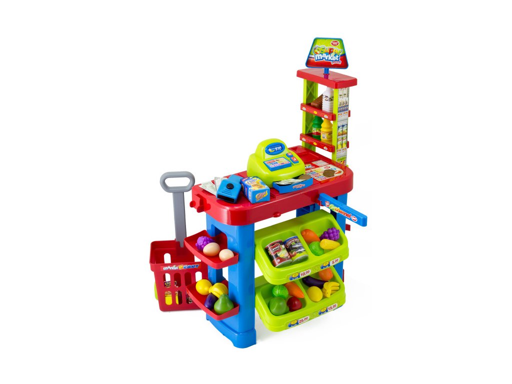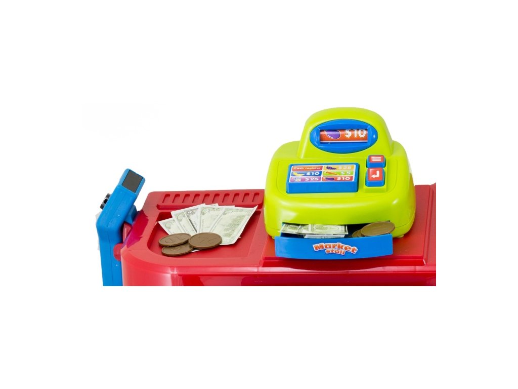 Hrací set G21 Dětský obchod s příslušenstvím je prodejní stánek se zeleninou, ovocem a různými dobrotami. Chcete své dítě naučit hospodařit s penězi, ale opravdové mu ještě svěřit nechcete? Tak vyzkoušejte tuto hru na prodavače a zákazníka. Součástí je totiž samozřejmě pokladna s papírovými i kovovými penězi, čtečka čárového kódu (s reálným zvukem) a pro zákazníka košík na kolečkách.