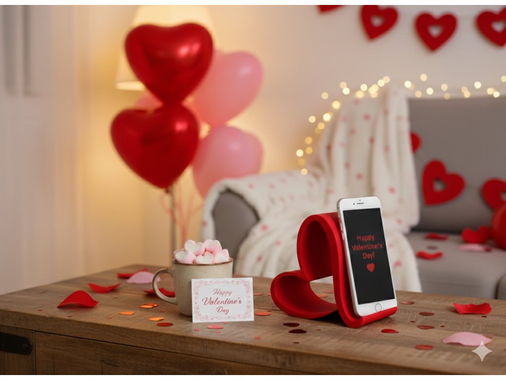 Huka Stolní držák na mobil – motiv Srdce, červený