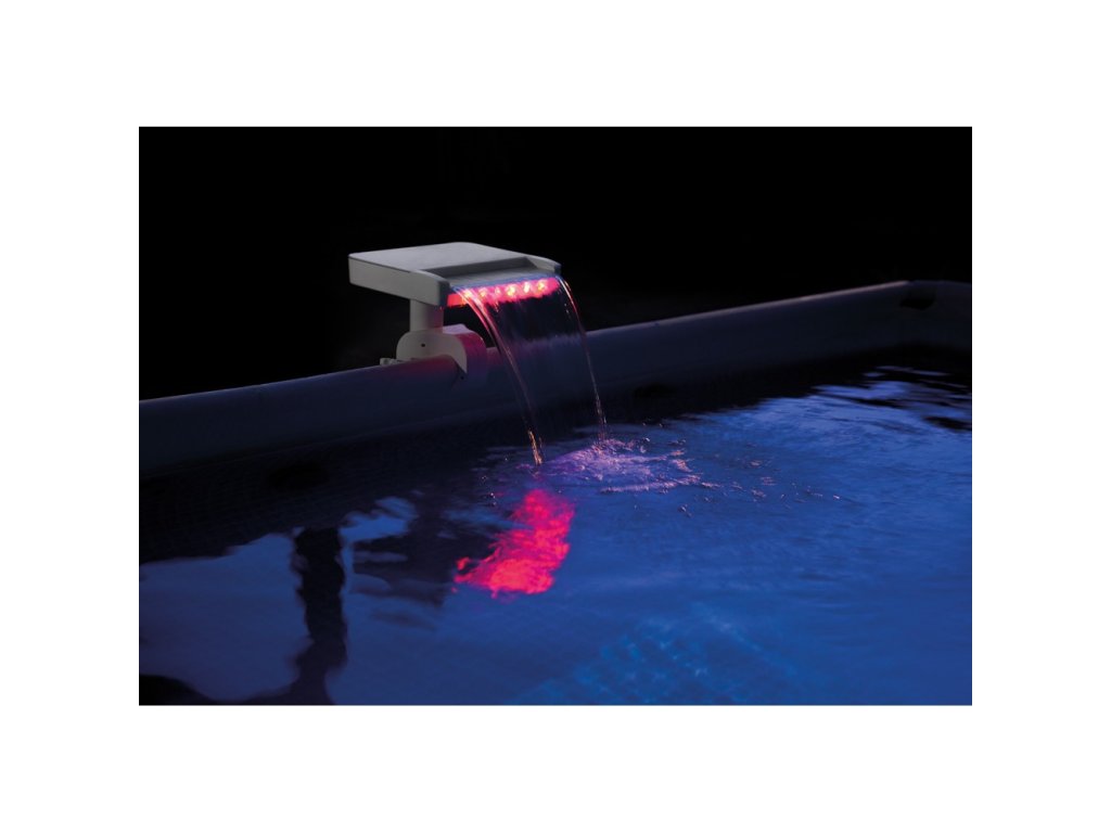 Bazénový vodopád je jedna z vodních atrakcí, která vám zpříjemní pobyt u bazénu. Vodopád svítí v měnící se červené, modré a zelené barvě. Užijete si zábavu světel především večer.