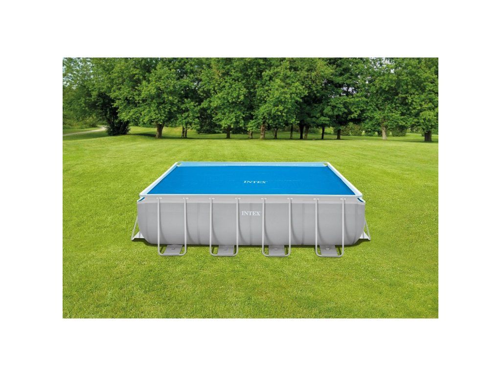 INTEX solární plachta je vyrobena z bublinkové polyetylénové tepelně izolační plachty. Snižuje množství vzduchem přenášených nečistot a přispívá tak k čistější hladině vody. V závislosti na množství přímého slunečního záření může udržovat vysokou teplotu vody v bazénu. Brání odparu vody a úniku vytvářeného tepla při poklesu teplot v noci a v chladnějších dnech.