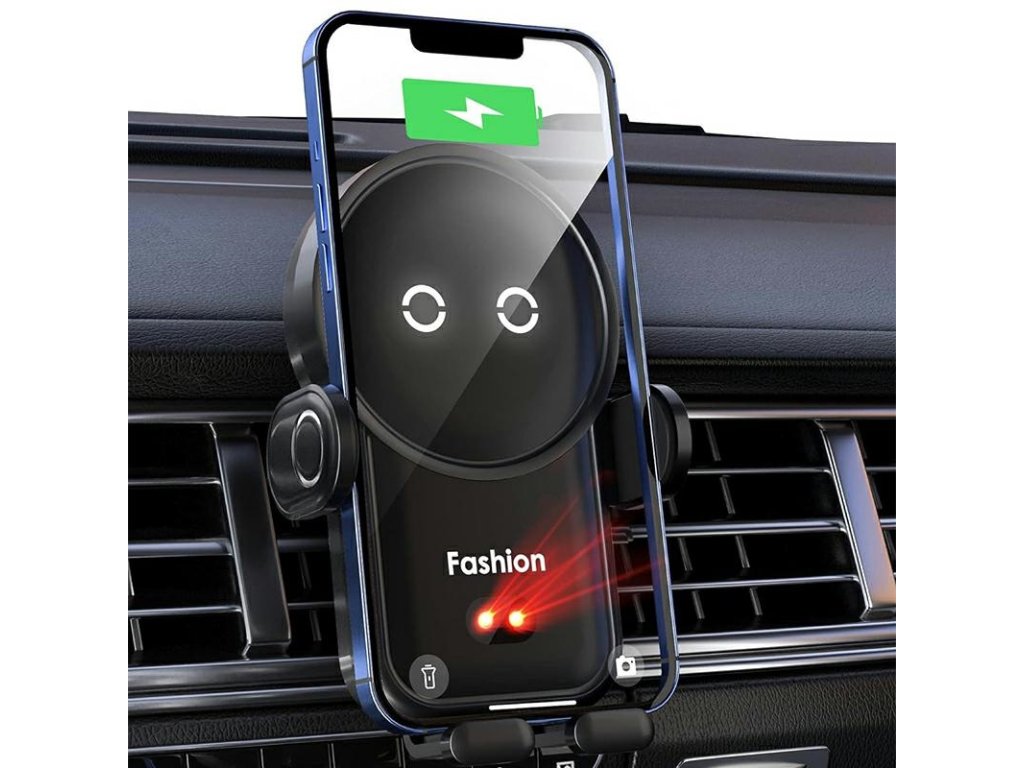 Univerzální držák telefonu do auta s indukční nabíječkou, montovaný do větracího otvoru. Specifikace: Automatická detekce zařízení podporujících rychlé indukční nabíjení, Výkon: 15 W (max.), Automatické a elektrické nastavení ramen držáku na šířku telefonu (pomocí senzoru přiblížení nebo ručně dotykovým tlačítkem), Nastavení šířky telefonu: 9,7–6,7 cm, Délka držáku: 12,5 cm, Upevnění klipem do větracího otvoru, Napájení: USB-C (100cm kabel je součástí balení), LED podsvícení