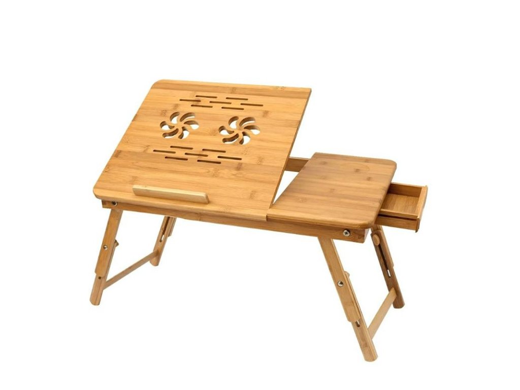 Tento bambusový stůl se vyznačuje 4stupňovým nastavením sklonu desky stolu a plynulým nastavením délky nohou, což vám umožní nastavit optimální úhel a výšku pro maximální pohodlí. Zabraňuje přehřívání počítače a vybíjení baterie. Vlastnosti produktu: - Určeno pro notebooky do 15" - Výška stolu v rozloženém stavu: 17,5 cm až 24 cm - Vyrobeno z bambusu - Rozměry desky stolu: 49,5 cm x 30 cm - Skrytá zásuvka na příslušenství - 4stupňové nastavení sklonu desky stolu Počet kusů na paletě: 140