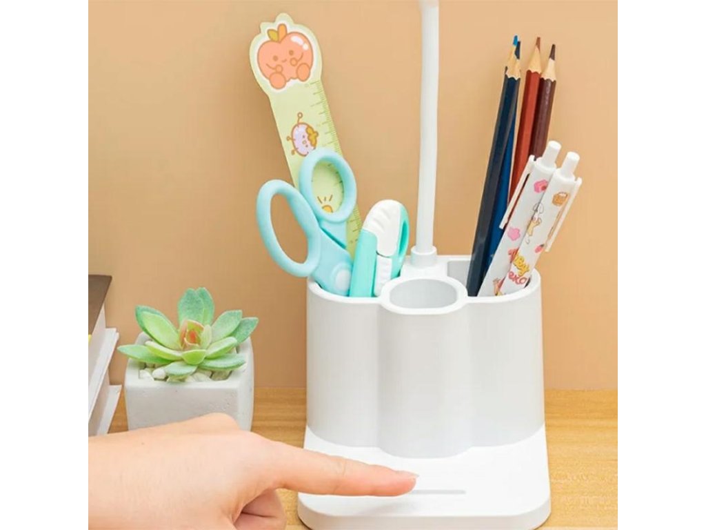 Lampa s organizérem na kancelářské příslušenství. Tato jednoduchá, ale užitečná lampa je vybavena plně nastavitelným světelným modulem, který vám umožní umístit ji přesně tam, kde potřebujete více světla. Organizér na kancelářské příslušenství z ní zase dělá všestranný gadget. Specifikace: Světelné body lampy: studené a teplé, dvoubarevné LED diody. Napětí: 5 V. Plynulé stmívání od 0 do 100 %. Zdroj světla: 20 LED diod. Baterie: lithiová. Kapacita baterie: 800 mAh. Držák na telefon. Adaptér a USB nabíjecí kabel jsou součástí balení. Rozměry: V/Š/H: 30/15/11 cm. Rozměry krabice: 19 x 11 x 11 cm.