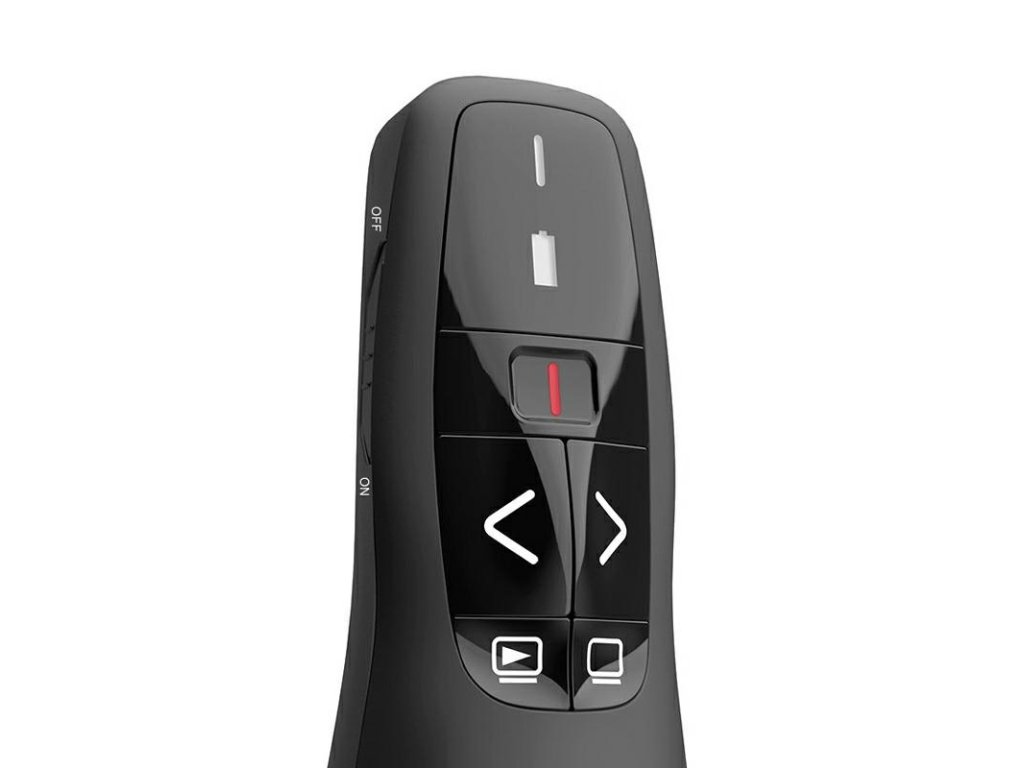 Rádiový dálkový ovladač pro ovládání multimediálních prezentací/prezentací pomocí vestavěného laserového ukazovátka. Jednoduše připojte USB přijímač (skrytý v ovladači) k počítači; nejsou potřeba žádné další ovladače. Značka: Carruzzo Technické specifikace: - dosah: 12 m - funguje s programy MS Office - systémové požadavky: Windows 98/2000/XP/Vista/7, Linux, Mac OS - vestavěné laserové ukazovátko - vlnová délka laseru: 650 nm - napájení 2x AAA bateriemi - funkce: Další snímek, Předchozí snímek, Start/Pauza, Spořič obrazovky (v některých aplikacích). - rozměry: 11,5x4x3 cm