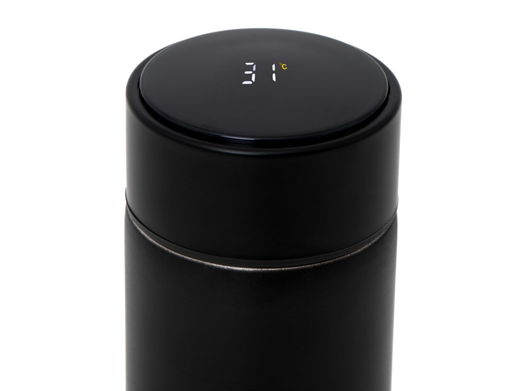 Nemáte vždy čas si v klidu vychutnat svůj oblíbený drink? Nalijte ho do termosky a užijte si ho na cestách nebo v práci. Prohlédněte si náš elegantní hrnek s LED displejem, který ukazuje teplotu nápoje uvnitř! Díky displeji můžete ovládat teplotu nápoje. Už vás nepřekvapí příliš horký čaj! Informace o teplotě najdete na víku.