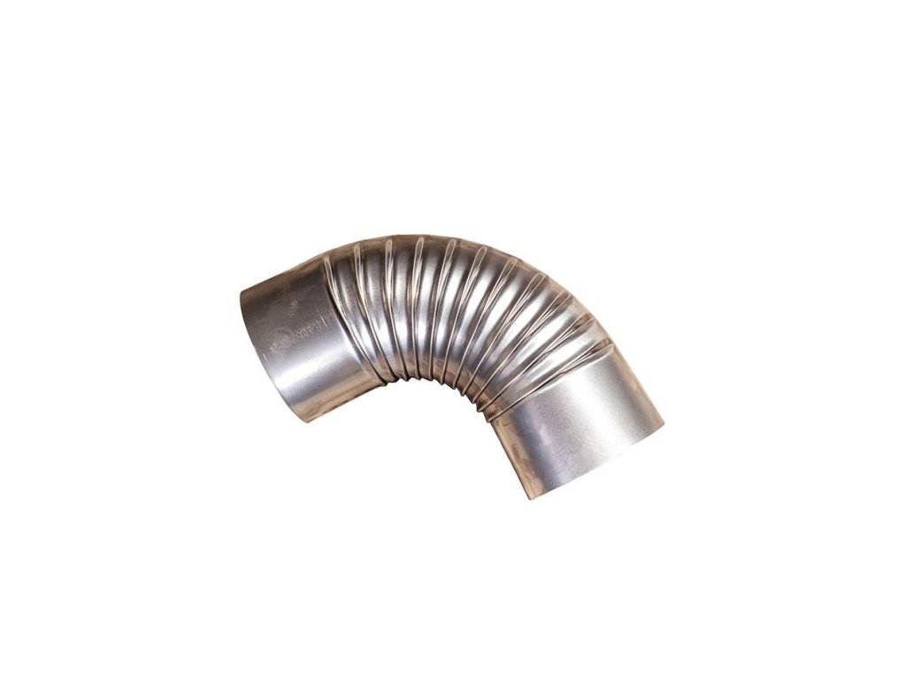 Kouřové koleno z ocelového plechu, vhodné pro kamna na tuhá paliva.