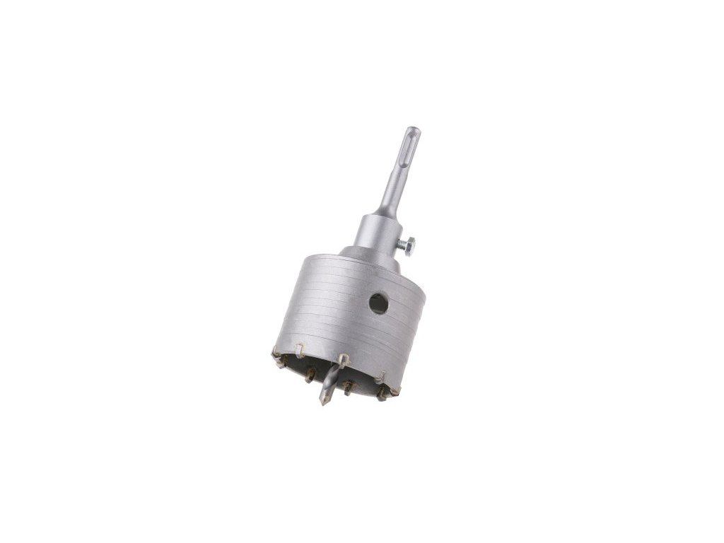 vykružovací / vrtací korunka s SK plátky a vodícím vrtákem uchycení SDS+ kvalitní SK plátky (SK - slinutý karbid), dlouhá životnost, rychlý prostup materiálem vodící - středící vrták usnadňuje práci a korunku přesně vede a drží na požadovaném místě pro vrtání větších průměrů do betonu, porobetonu, cihel a podobných zdících materiálů korunka není vhodná na vrtání železobetonu