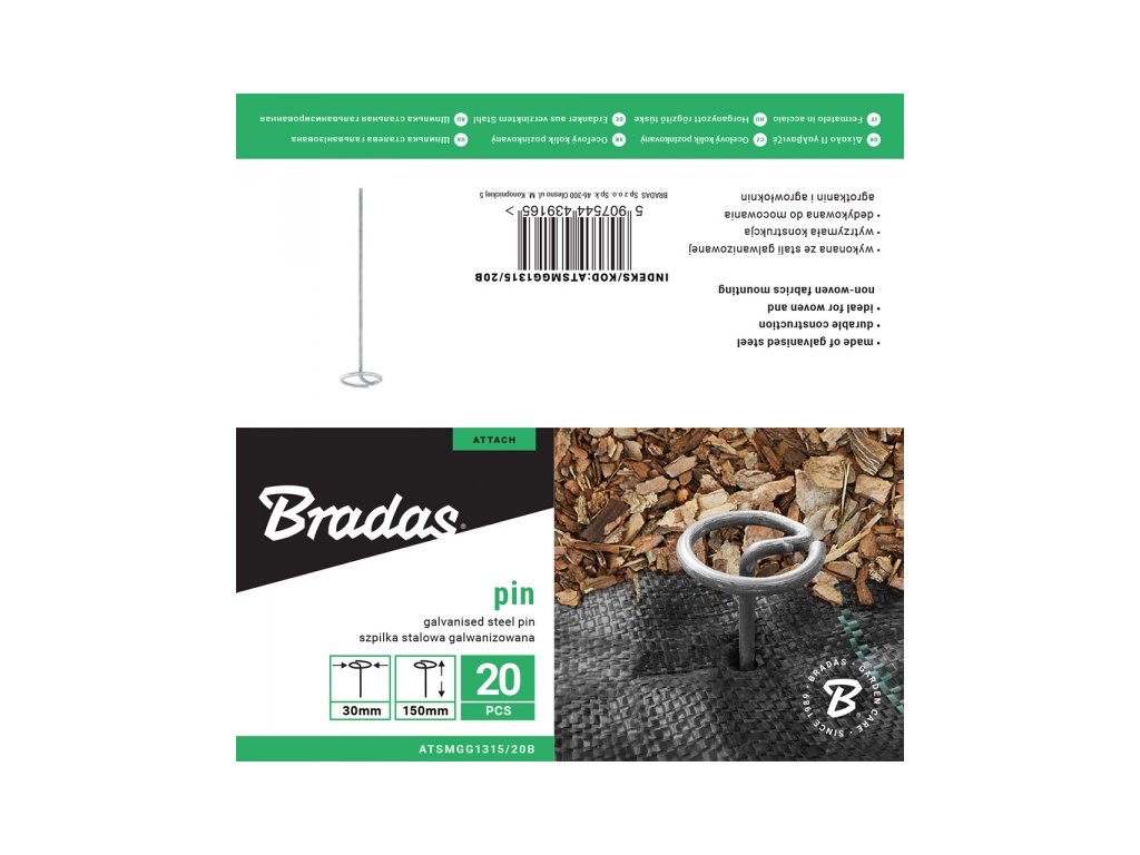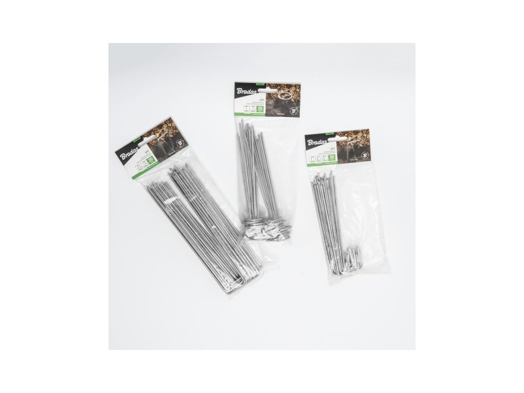 Kolík tvaru písmene "G" z pozinkované oceli sloužící k upevnění netkané textilie k povrchu. Balení obsahuje 20 kusů.