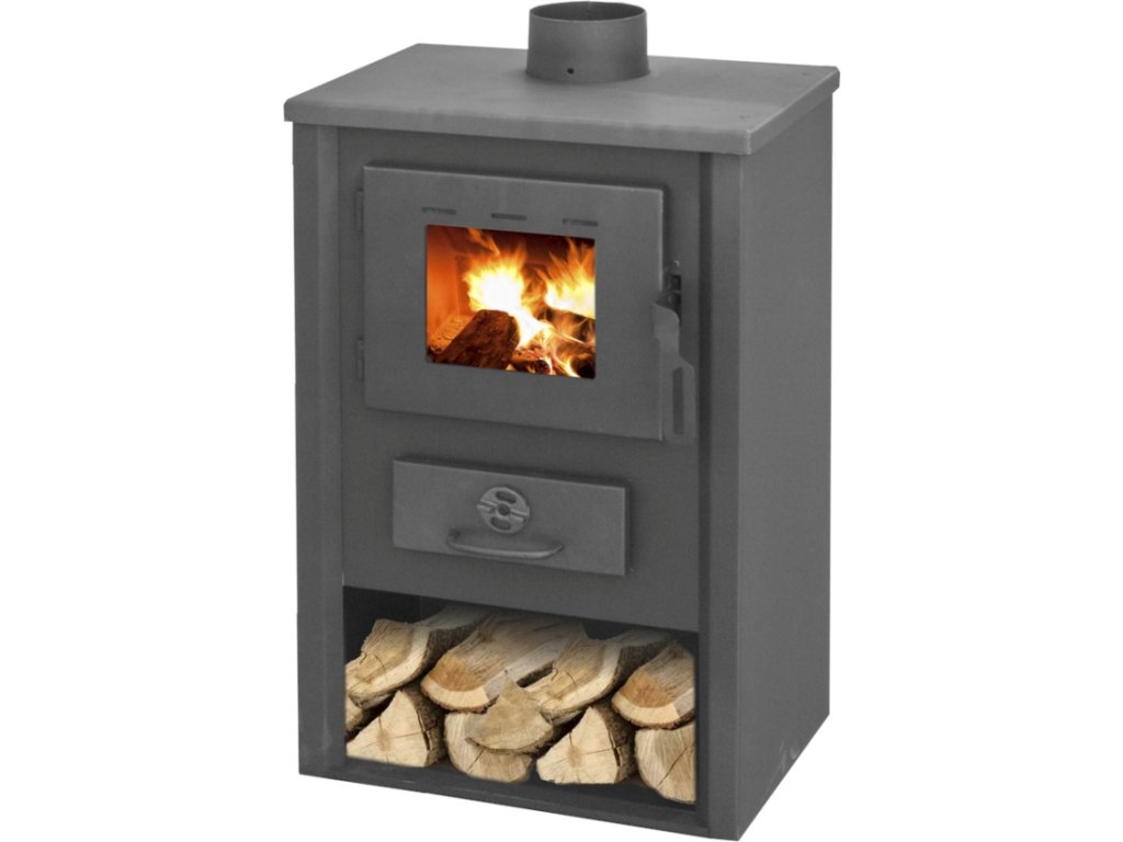 Pod topeništěm se nachází popelník. Spodní část kamen slouží jako zásobník na dřevo.