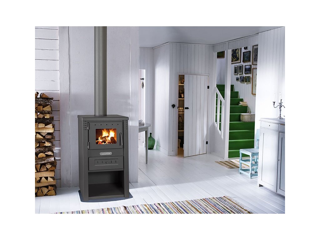 Pod topeništěm se nachází popelník. Spodní část kamen slouží jako zásobník na dřevo.